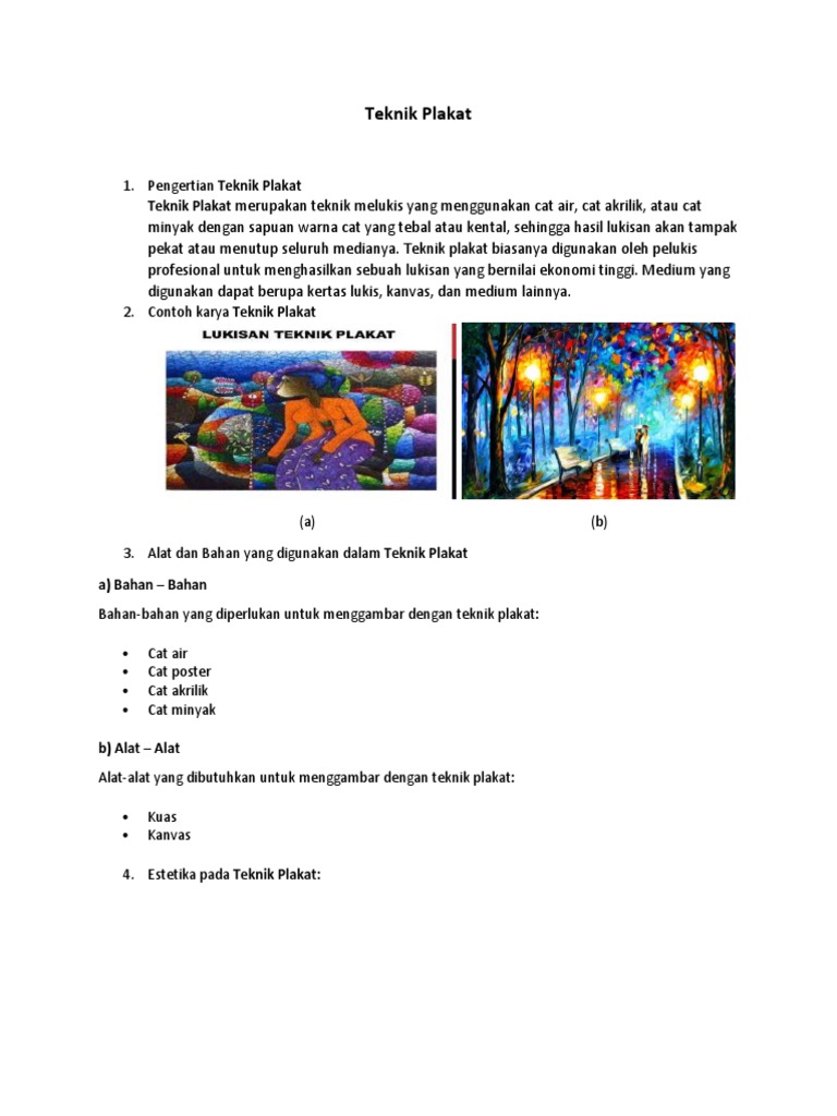 Plakat Pengertian Jenis Fungsi Teknik Melukis Contoh from pakdosen.co.id Teknik plakat adalah cara membuat tampilan sebuah warna agar terlihat mencolok , tegas dan tebal dengan menggunakan. Teknik seni lukis cat minyak. Teknik melukis plakat adalah sebuah teknik menggambar dengan menggunakan cat minyak atau cat cair, dengan. Ada banyak teknik dalam menggambar. 5 656 просмотров 5,6 тыс. plakat makna plakat di kbbi adalah: Artı teknik ekibi olarak kombiservis ,kombi bakımı, kombi tamiri gibi birçok sıkıntınıza çözüm sağlarız. Plakat adalah suatu tulisan yang dipasang biasanya pada tempat umum yaitu kartu kecil, rambu, serta pelang.plakat sering digantung.